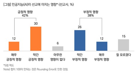 - ÀΰøÁö´É, ¼±±³¿¡ ºÎÁ¤º¸´Ù ±àÁ¤Àû ¿µÇâ ´õ Ŭ °Í! ¡Ü ¾Õ¼ ¼±±³»çµéÀÌ AI¸¦ ¹Ì·¡ ¼¼°è¼±±³¿¡ ¿µÇâÀ» ¹ÌÄ¥ ÁÖ¿ä ¿äÀÎ(3¼øÀ§)À¸·Î ²ÅÀº °¡¿îµ¥, ÀΰøÁö´ÉÀÇ µîÀåÀÌ ¼±±³¿¡ ¾î¶² ¿µÇâÀ» ¹ÌÄ¥Áö¸¦ ¹¯´Â Áú¹®¿¡ ¡®±àÁ¤Àû ¿µÇâÀ» ÁÙ °Í¡¯(42%)À̶ó´Â ÀÀ´äÀÌ ¡®ºÎÁ¤Àû ¿µÇâÀ» ÁÙ °Í¡¯(38%)º¸´Ù ´õ ¸¹¾Ò´Ù. ¡Ü ÀΰøÁö´É µî ±â¼ú ¹ßÀüÀÌ ¼±±³¿¡ À§ÇùÀÌ ¾Æ´Ñ ±âȸ·Î ÀÛ¿ëÇÒ ¼ö ÀÖ´Ù´Â ¼±±³»çµéÀÇ ±àÁ¤Àû ÀνÄÀ» ¿³º¼ ¼ö ÀÖ´Ù.