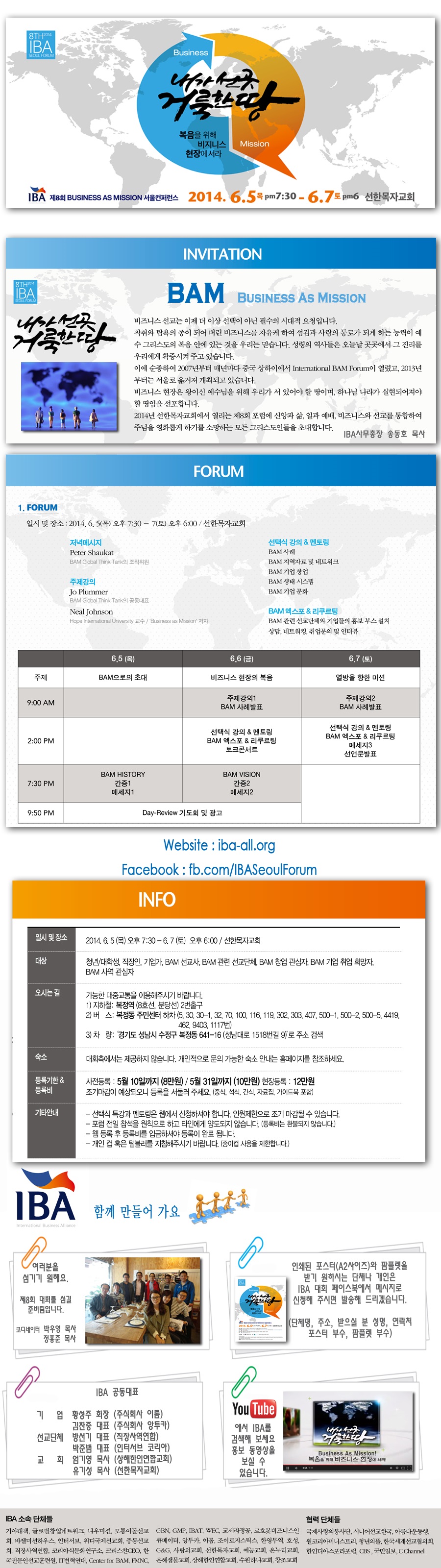 IBA¼­¿ïÆ÷·³Àº ºñÁö´Ï½º ¼±±³(BAM, Business As Mission)À» ´Ù·ç´Â °¡Àå Å« ¼±±³ ´ëȸÀÔ´Ï´Ù.